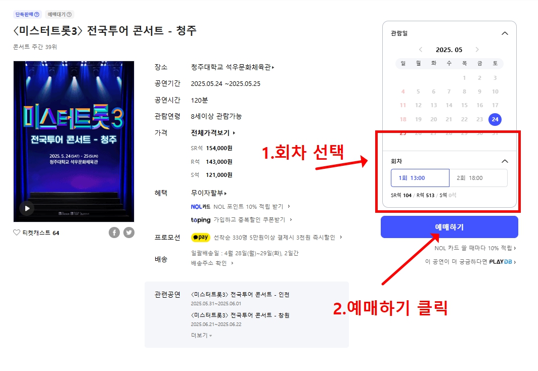 SR석은 조기 매진이 예상되니 늦지 않게 서두르시길 추천드립니다